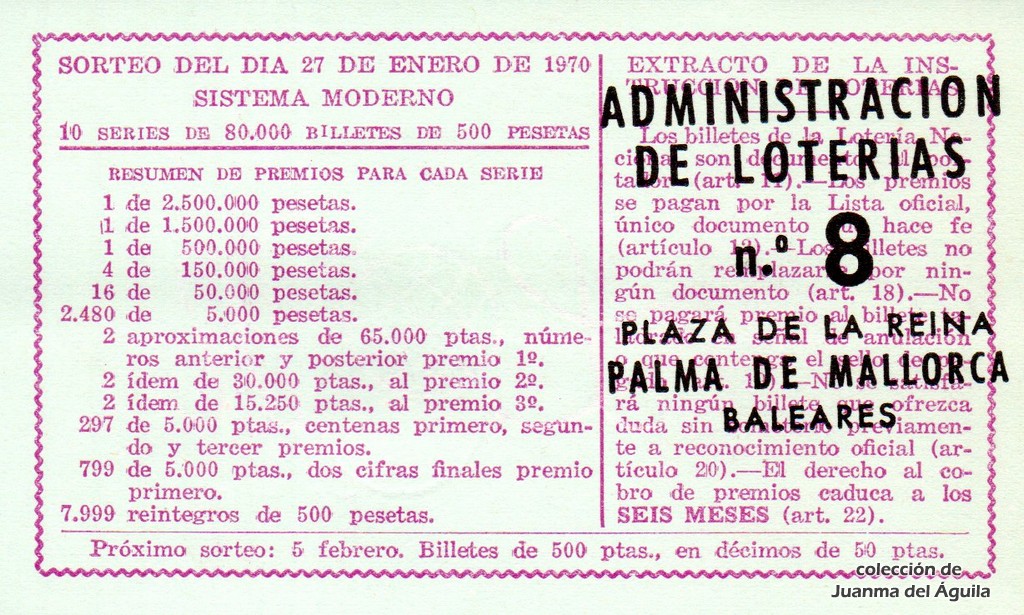 Décimo: 50421 serie 4ª fracción 3ª de la administración nº 8 de Palma de Mallorca