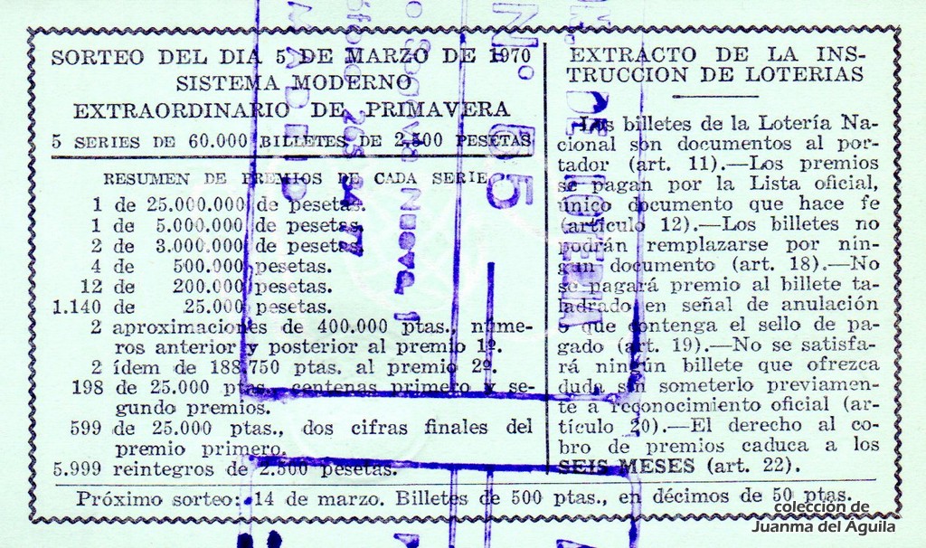 SORTEO EXTRAORDINARIO DE PRIMAVERA. 5 series de 60.000 billetes