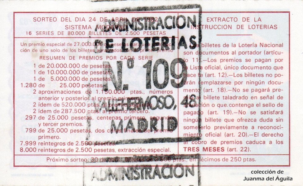 Sorteo: 15/1982 del Sabado 24 de Abril de 1982