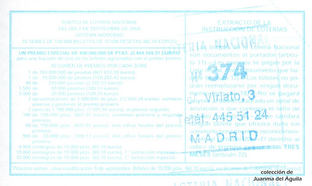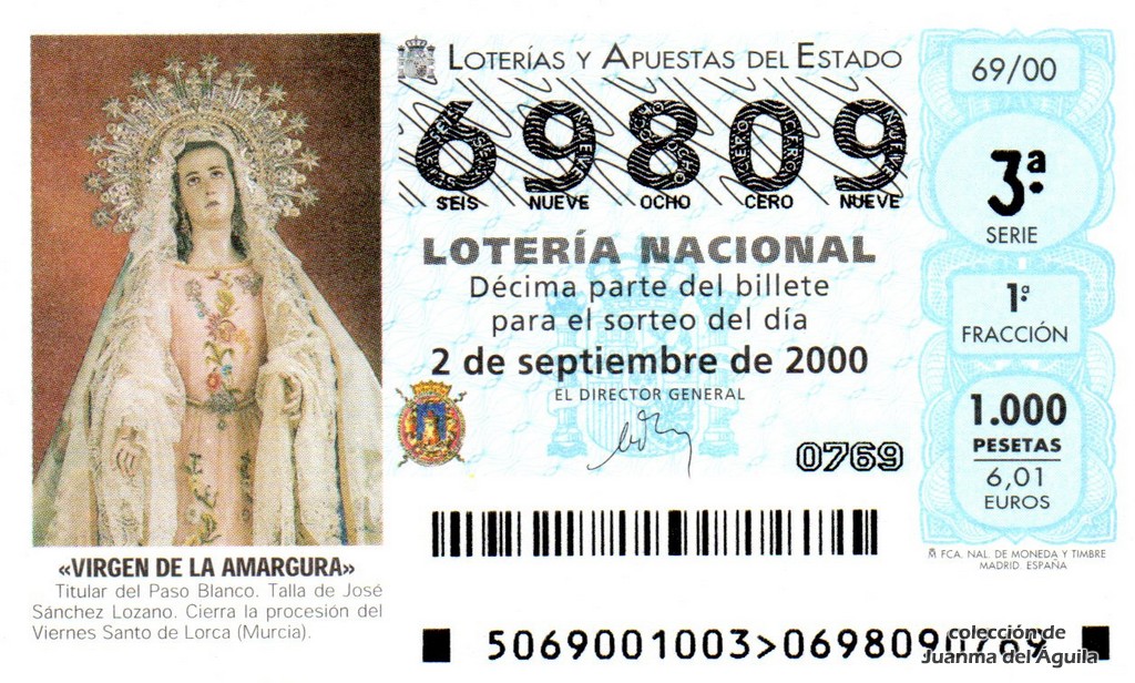 Precio del décimo: 1.000 pesetas / 6,01 euros