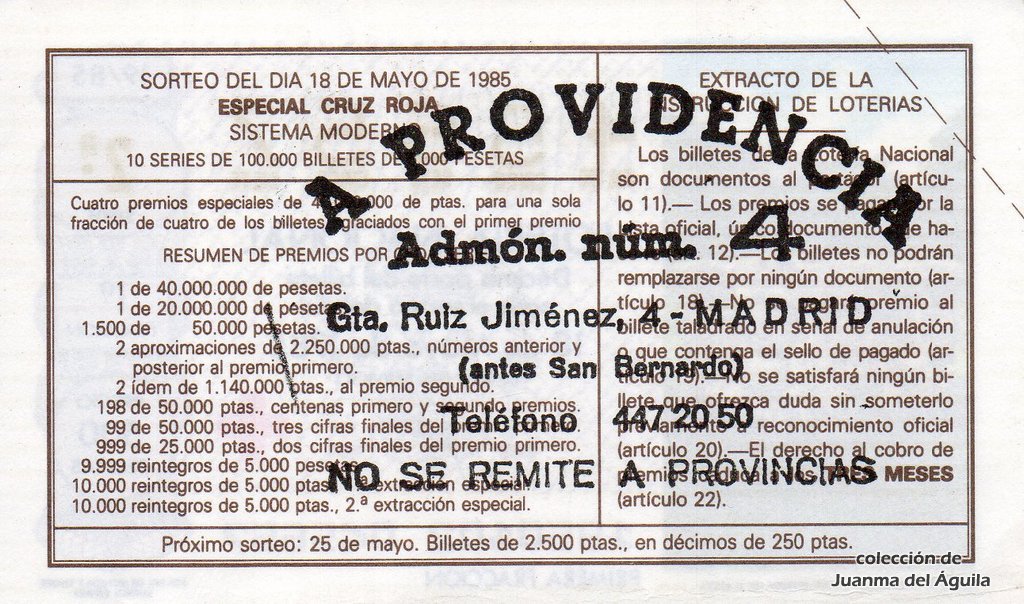 Décimo: 45657 serie 2ª fracción 1ª de la administración nº 4 de Madrid. LA PROVIDENCIA