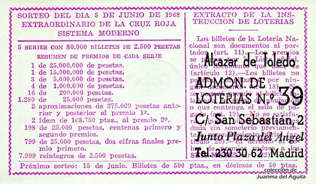 Décimo: 14247 serie 1ª fracción 6ª de la administración nº 39 de Madrid. Alcazar de Toledo