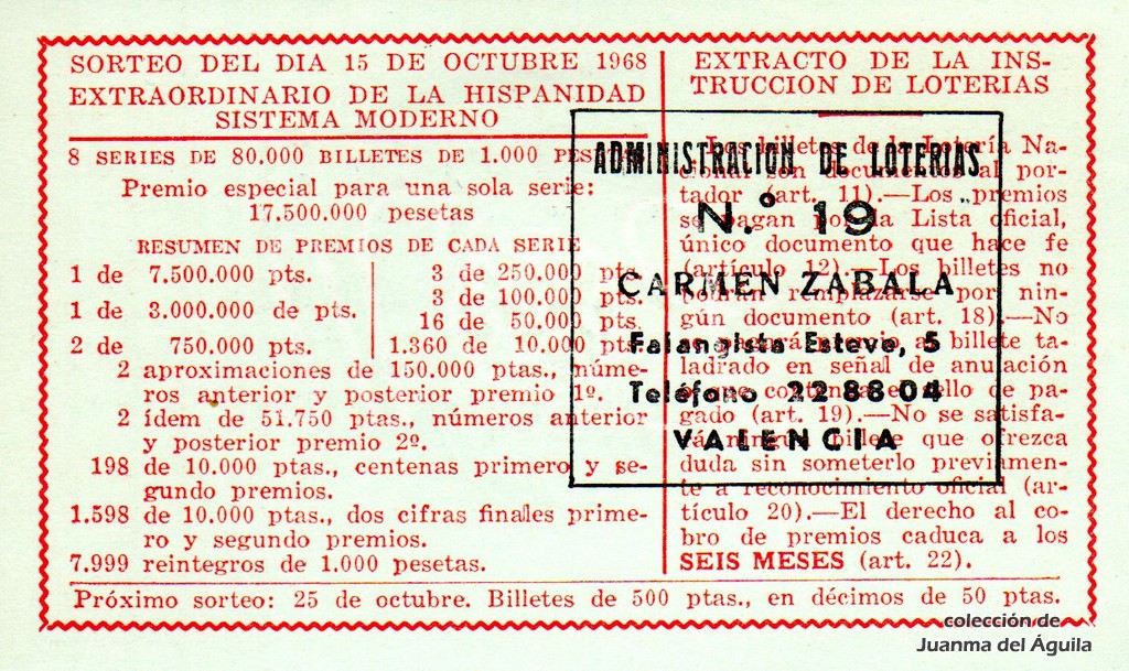 SORTEO EXTRAORDINARIO DE LA HISPANIDAD. 8 series de 80.000 billetes