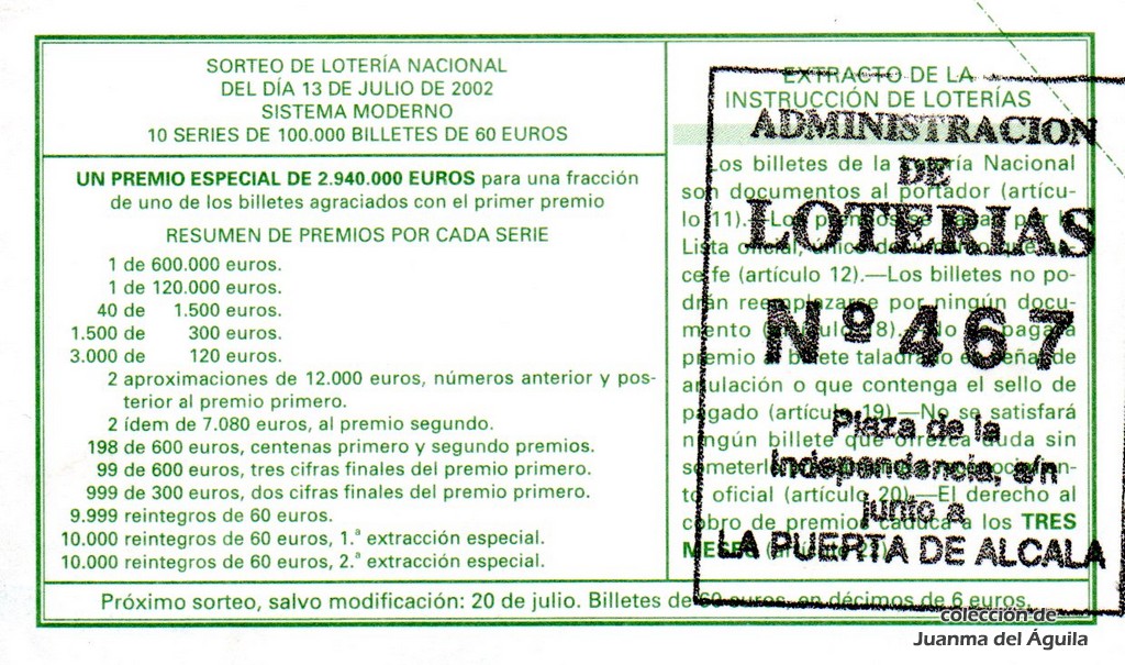 Sorteo: 55/2002 del Sabado 13 de Julio de 2002