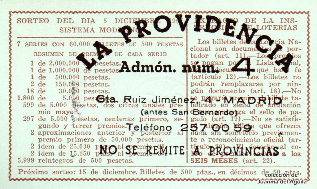 Décimo: 32685 serie 2ª fracción 1ª de la administración nº 4 de Madrid. LA PROVIDENCIA
