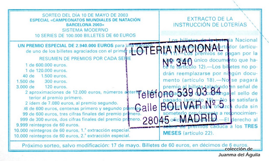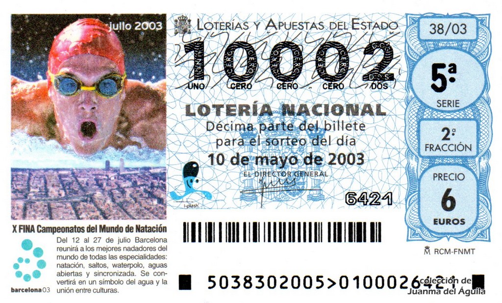 SORTEO ESPECIAL «CAMPEONATOS MUNDIALES DE NATACIÓN BARCELONA 2003» - 10 series de 100.000 billetes