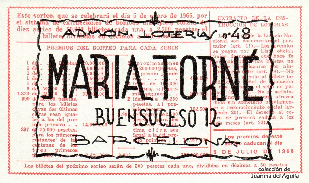 Décimo: 20971 serie 8ª fracción 4ª de la administración nº 48 de Barcelona. MARIA TORNÉ