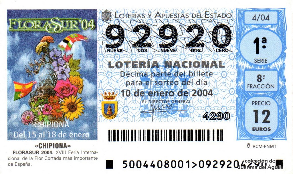 Sorteo: 4/2004 del Sabado 10 de Enero de 2004
