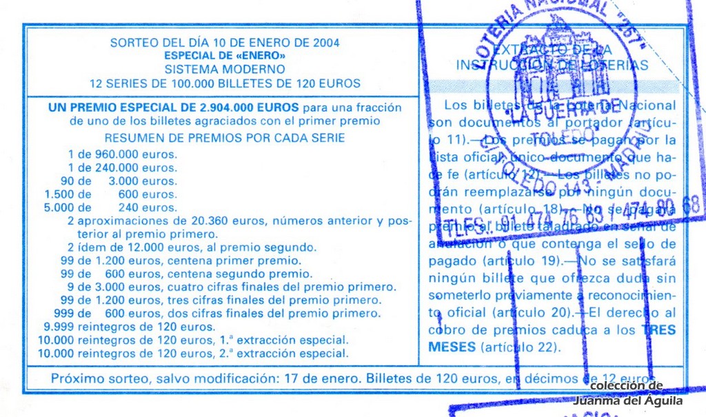 SORTEO ESPECIAL DE «ENERO». 12 series de 100.000 billetes