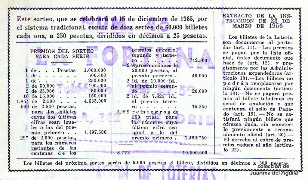Sorteo: 35/1965 del Miercoles 15 de Diciembre de 1965