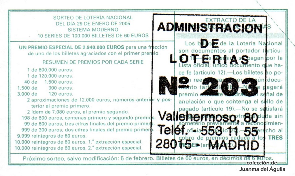 Décimo: 82534 serie 6ª fracción 2ª de la administración nº 203 de Madrid