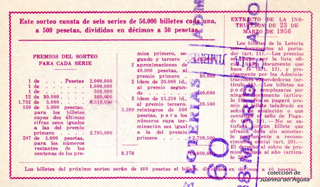 Precio del décimo: 50 pesetas