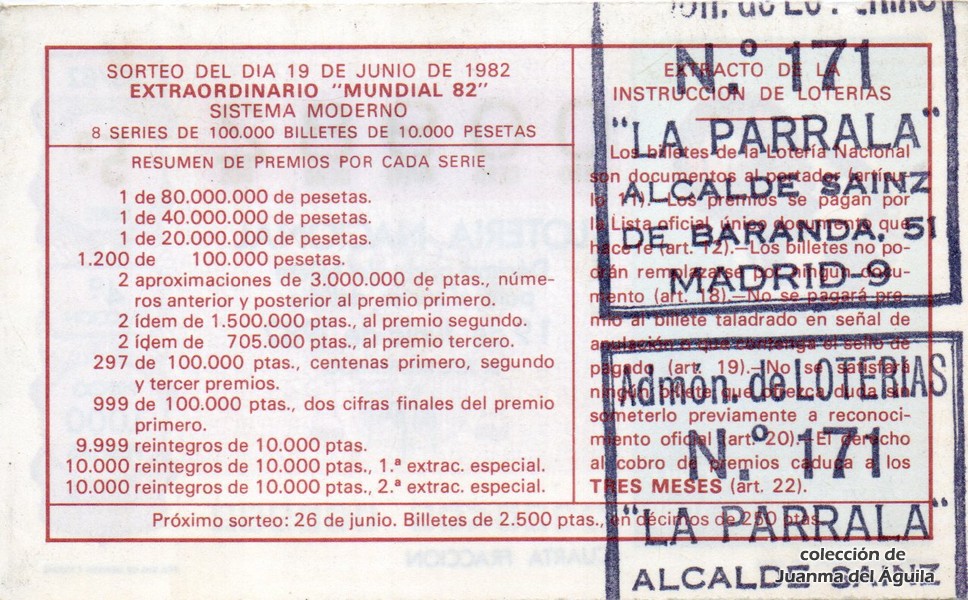 SORTEO EXTRAORDINARIO "MUNDIAL 82". 8 series de 100.000 billetes