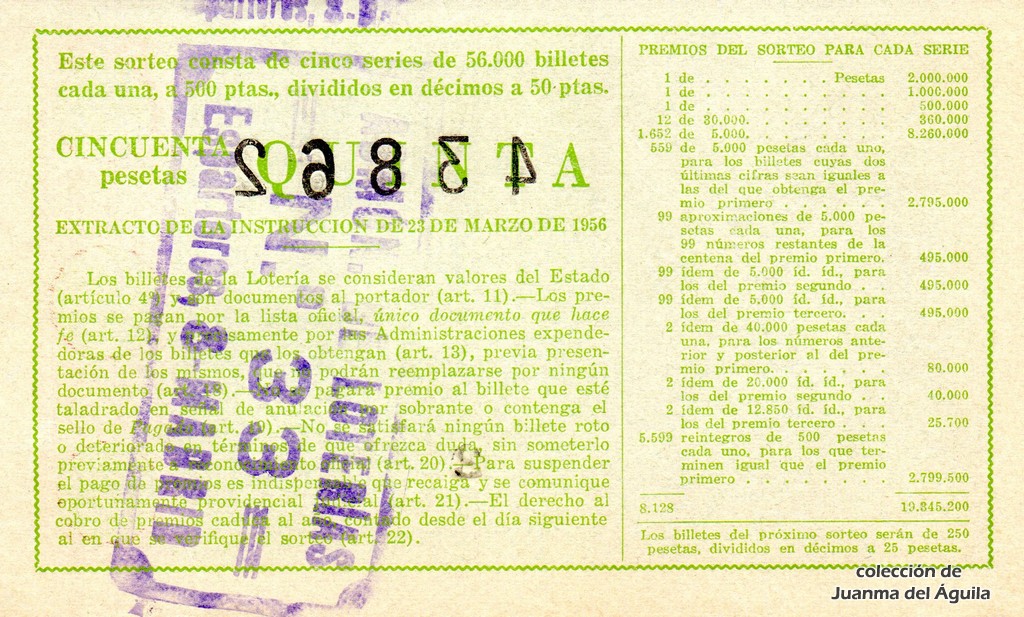 SORTEO ORDINARIO - 5 series de 56.000 billetes
