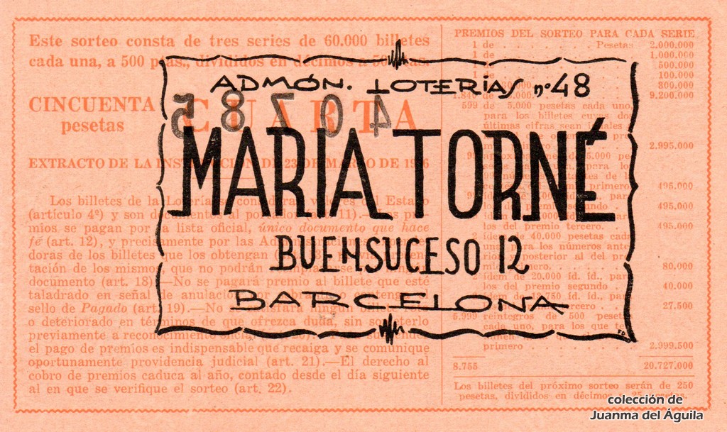 Décimo: 40785 serie 1ª fracción 4ª de la administración nº 48 de Barcelona. MARIA TORNÉ