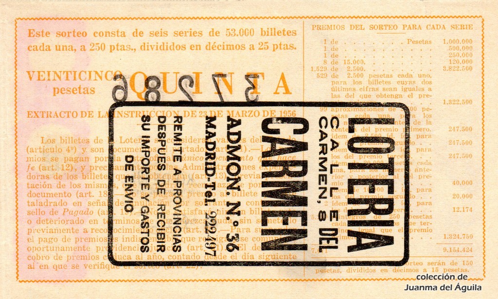 Décimo: 37286 serie 5ª fracción 5ª de la administración nº 36 de Madrid. LOTERIA DEL CARMEN