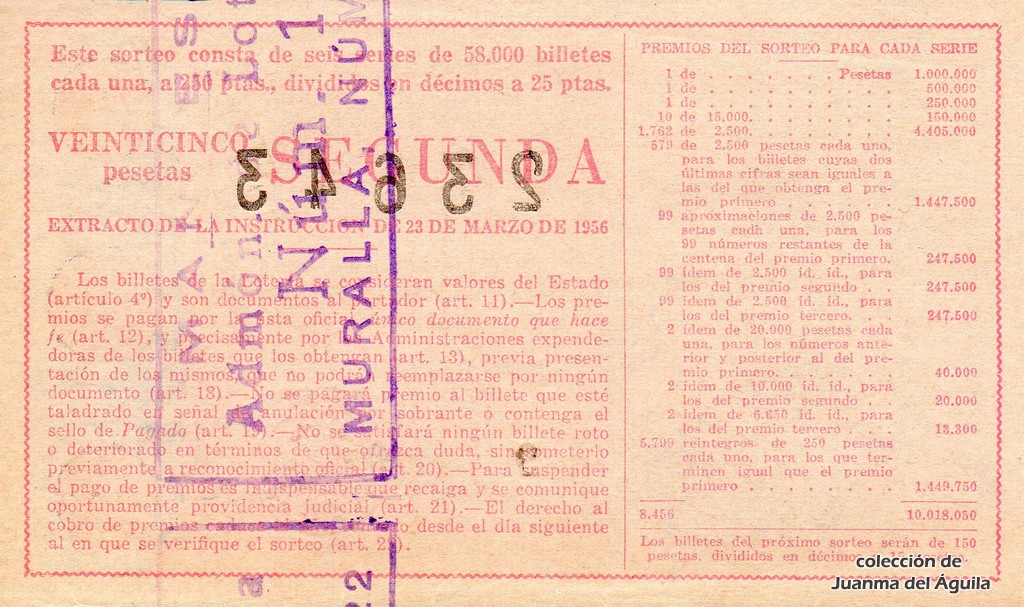 Precio del décimo: 25 pesetas