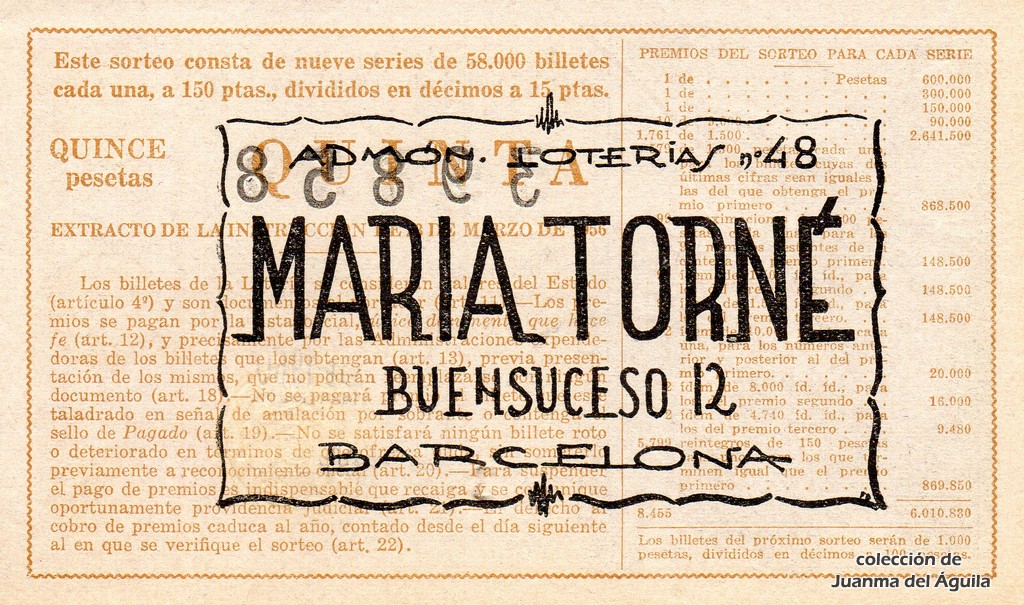 Décimo: 39858 serie 5ª fracción 5ª de la administración nº 48 de Barcelona. MARIA TORNÉ