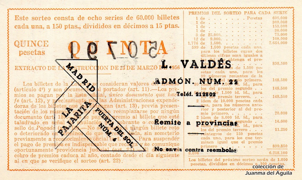 Décimo: 50791 serie 1ª fracción 5ª de la administración nº 22 de Madrid. LA PAJARITA