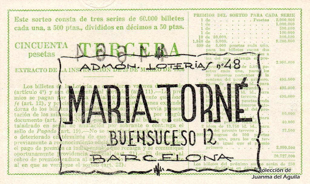 Décimo: 44664 serie 2ª fracción 3ª de la administración nº 48 de Barcelona. MARIA TORNÉ
