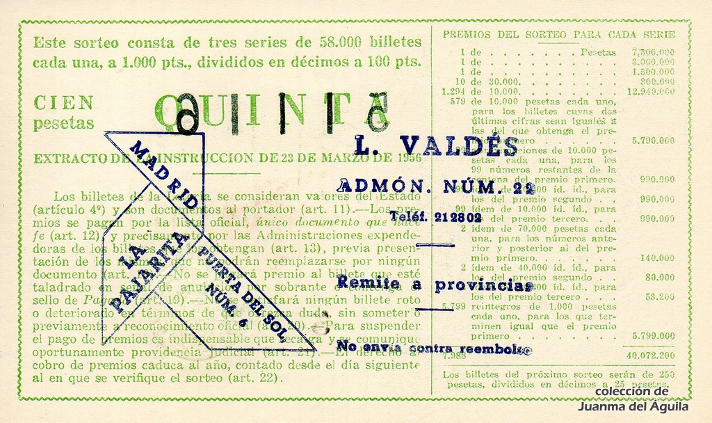 Décimo: 51116 serie 2ª fracción 5ª de la administración nº 22 de Madrid. LA PAJARITA