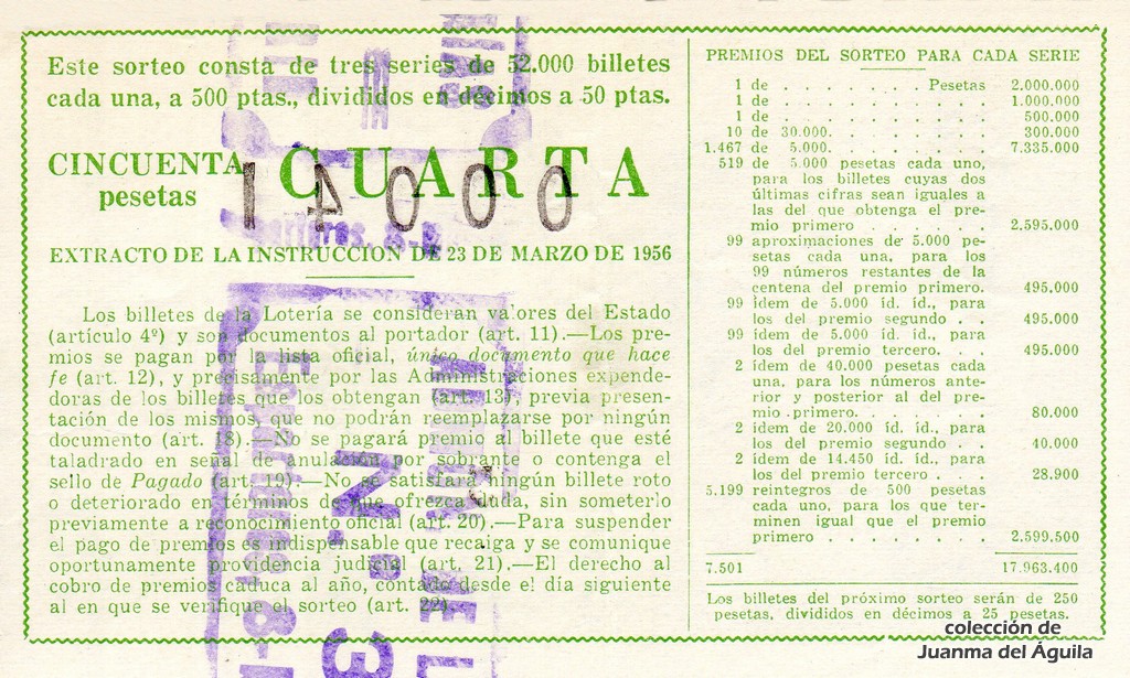 Precio del décimo: 50 pesetas