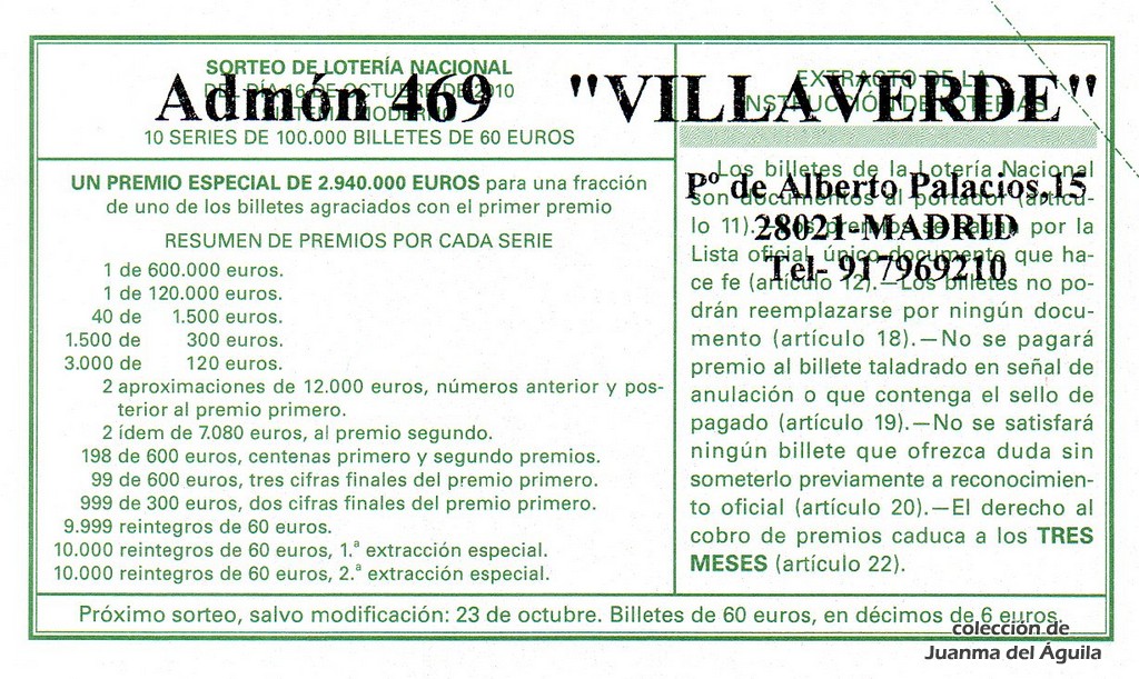 Décimo: 16645 serie 9ª fracción 7ª de la administración nº 469 de Madrid. "VILLAVERDE"