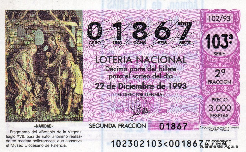 Décimo: 01867 serie 103ª fracción 2ª de la administración nº 122 de Madrid. EL RETIRO