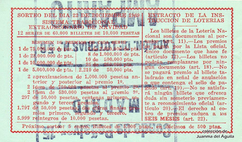 Sorteo: 36/1969 del Lunes 22 de Diciembre de 1969