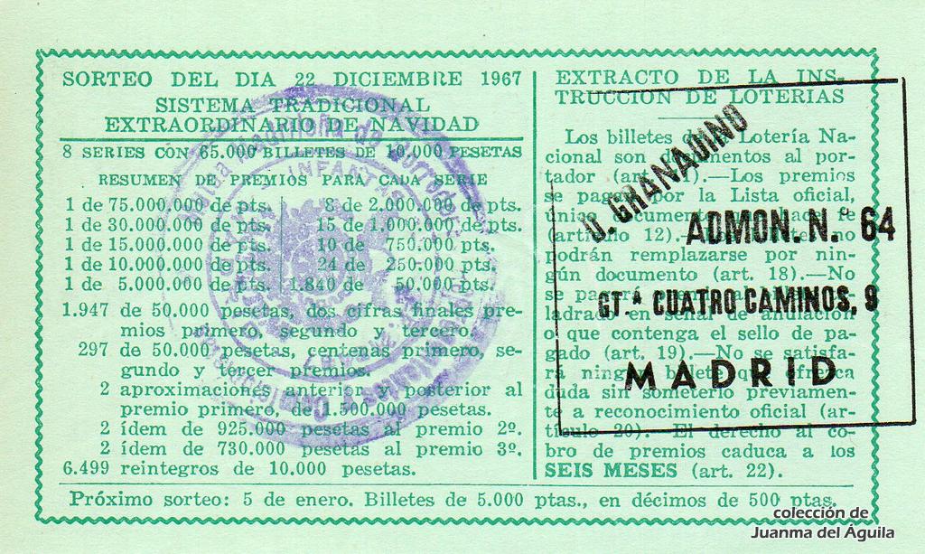 Sorteo: 36/1967 del Viernes 22 de Diciembre de 1967