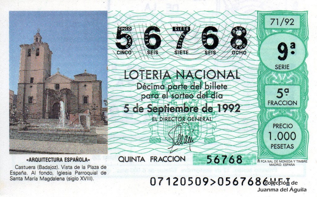 Sorteo: 71/1992 del Sabado 5 de Septiembre de 1992