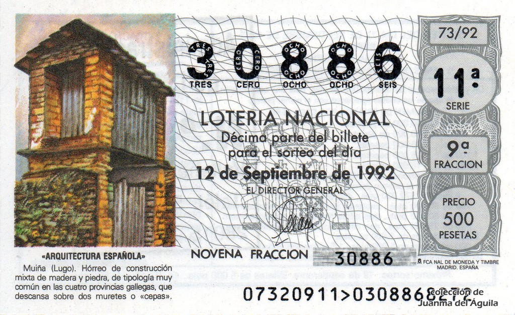 Sorteo: 73/1992 del Sabado 12 de Septiembre de 1992