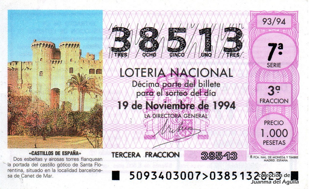 Décimo: 38513 serie 7ª fracción 3ª de la administración nº 179 de Madrid