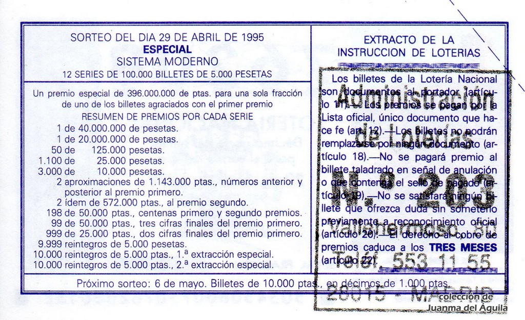 SORTEO ESPECIAL - 12 series de 100.000 billetes