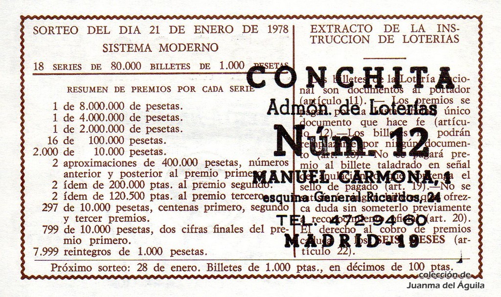 Décimo: 13889 serie 11ª fracción 8ª de la administración nº 12 de Madrid. CONCHITA