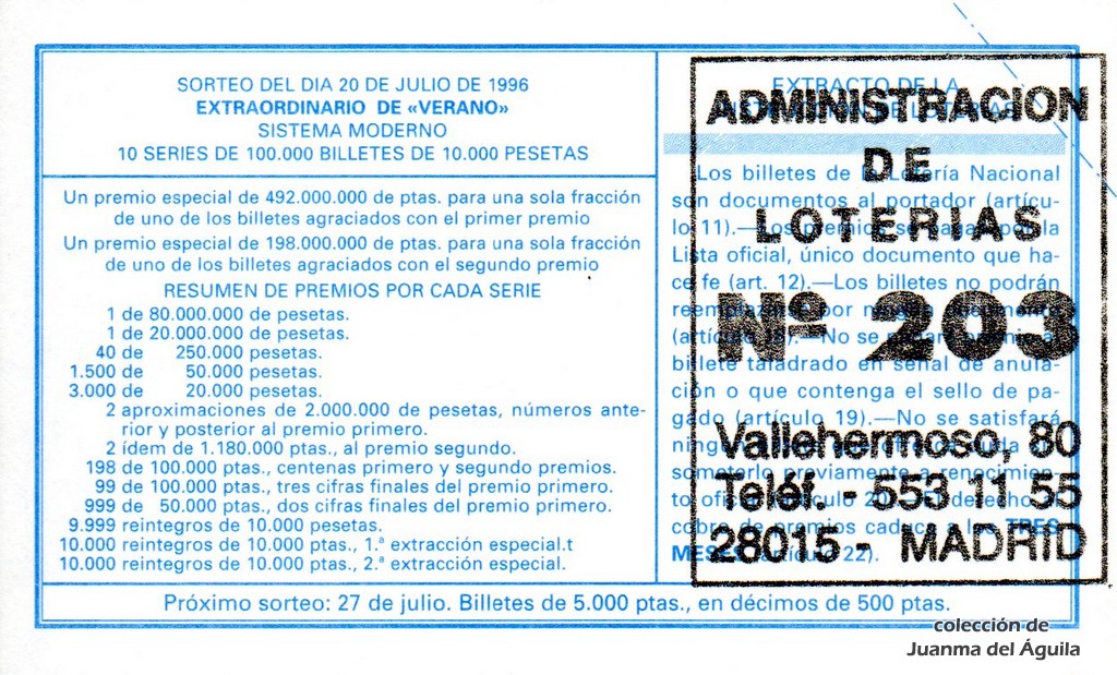 En el año 1996 (dedicado a "Arte en las Catedrales Españolas") en el sorteo nº 58 extraordinario de verano, celebrado el 20 de julio, la Ilustración se refiere a "«SANTIAGO DE COMPOSTELA» »Ciudad Europea de la Cultura en el año 2000.»"