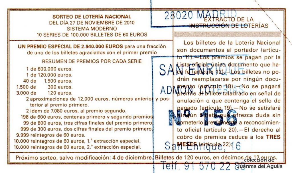 En el año 2010 (dedicado a "Paradores de España") en el sorteo nº 38, celebrado el 15 de mayo, la Ilustración se refiere a "«PARADOR DE SANTIAGO DE COMPOSTELA». El Hostal dos Reis Católicos situado en la Plaza do Obradoiro, es una mezcla de historia, arte y tradición, sueño de peregrinos y emblema de Santiago."